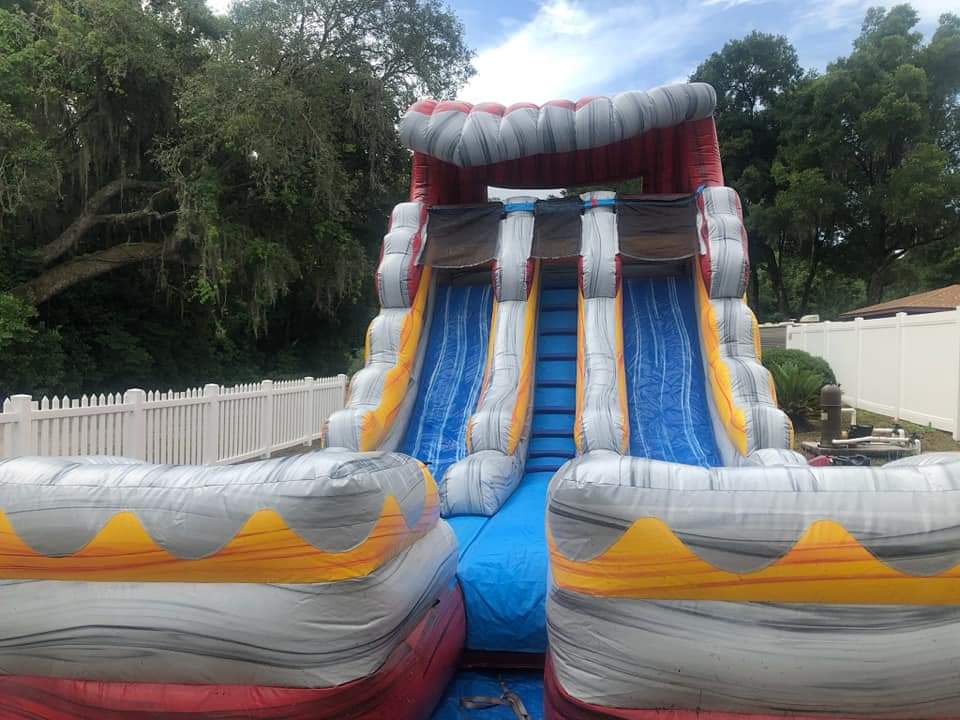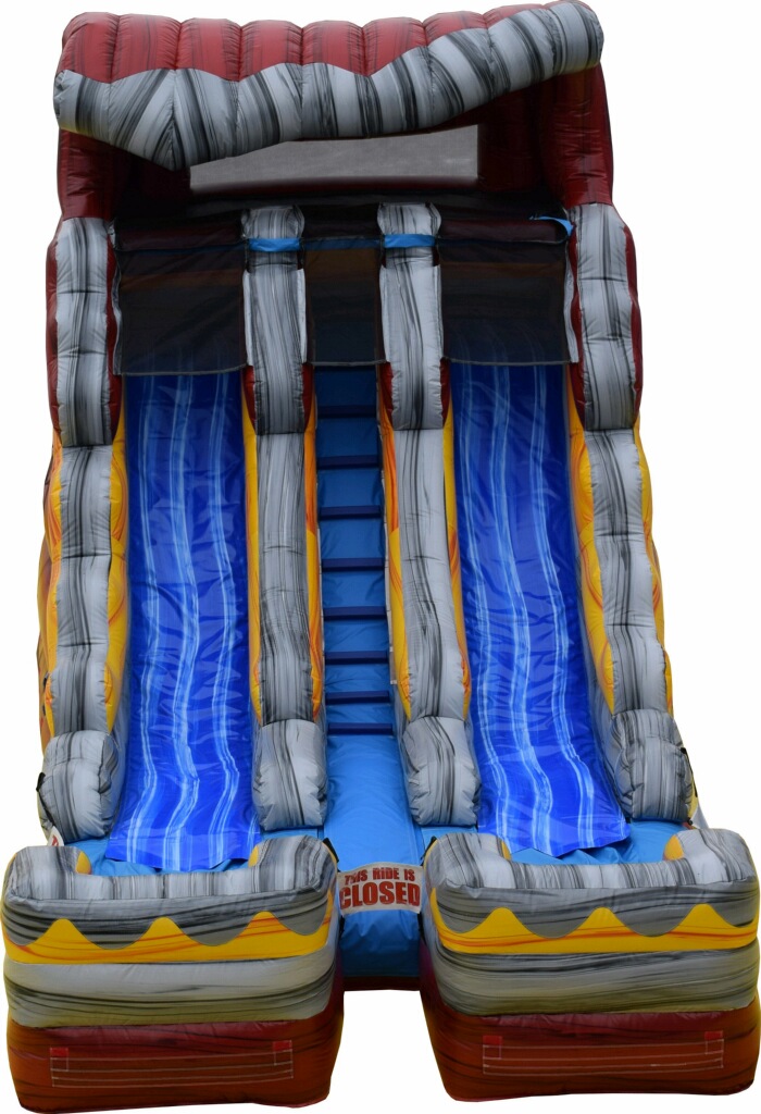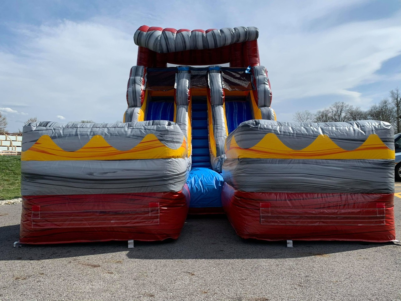 The slide can be used either wet or dry. So if you really want to cool down from the heat (from both the flames and the Sun) turn on the water and watch everyone go! No fire hydrant is needed. With it’s beautiful and vibrant color, the graphics of the flames, and inviting, deep, inflatable tub, the Fire Slide (Double Lane Waterslide) is everything you need for a summertime blast!