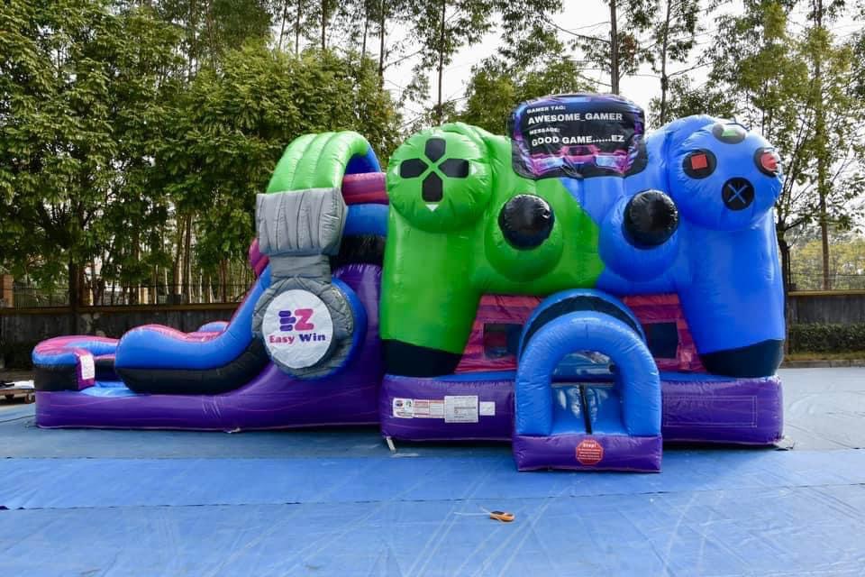 The Gamer Bounce House and Slide Combo is great for pre-teens or teenager birthday parties, graduation parties, or any other event where kids will gather!  This inflatable is perfect for school functions, too!  Do you want to be transported into a video game, but afraid your molecules won’t be put back together properly?  You’re not alone…that’s why we secured this Gamer inflatable!  It is the best of the gaming world combined with fun climbing, bouncing, sliding, and so much more!  No matter what gaming system you like, this one is sure to entertain!  Xbox, Playstation, Nintendo, even the old Sega systems will seem like child’s play compared to this outdoor and indoor activity!